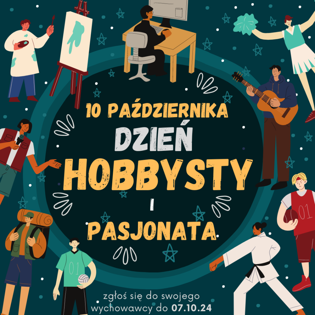 W czwartek 10 października odbędzie się II szkolna edycja Dnia Hobbysty i Pasjonata. Zachęcamy wszystkich uczniów do wzięcia udziału i zaprezentowania swoich zainteresowań. Więcej szczegółów u wychowawcy.