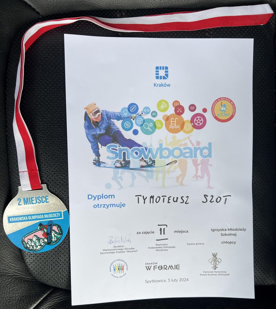 Podczas Krakowskiej Olimpiady Młodzieży w zawodach Snowboardowych (zjazd) nasz uczeń Tymoteusz Szot zdobył II miejsce – w kategorii chłopców ze szkół podstawowych! Zawody odbyły się 5 lutego w Spytkowicach. A za uzyskane miejsce Tymek zakwalifikował się do etapu wojewódzkiego, który odbędzie się 29.02.2024 r.
