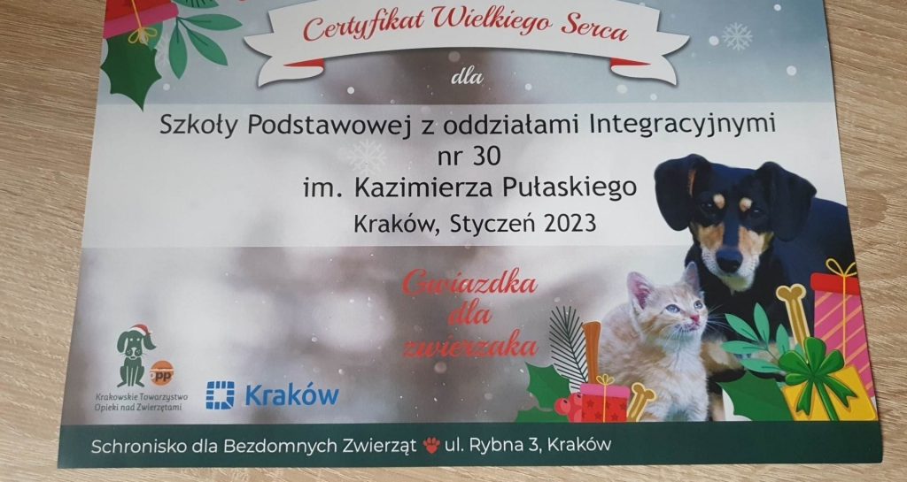 Kolejny raz uczniowie naszej szkoły wzięli udział w akcji KTOZ ,,Gwiazdka dla zwierzaka”.