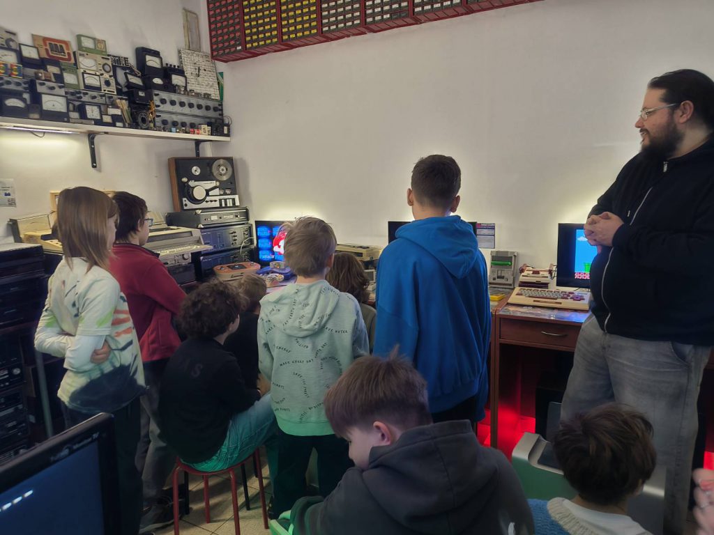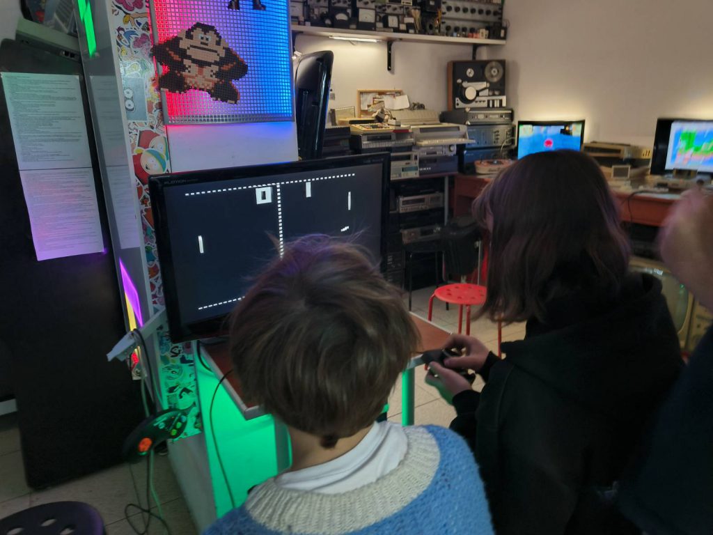 Uczniowie brali udział w wykładzie na temat początków gier wideo połączonym z demonstracją dawnych konsol. Dzieci miały okazję zobaczyć, dotknąć oraz użyć klasycznych sprzętów minionej epoki, które my jako dorośli na pewno dobrze pamiętamy :).