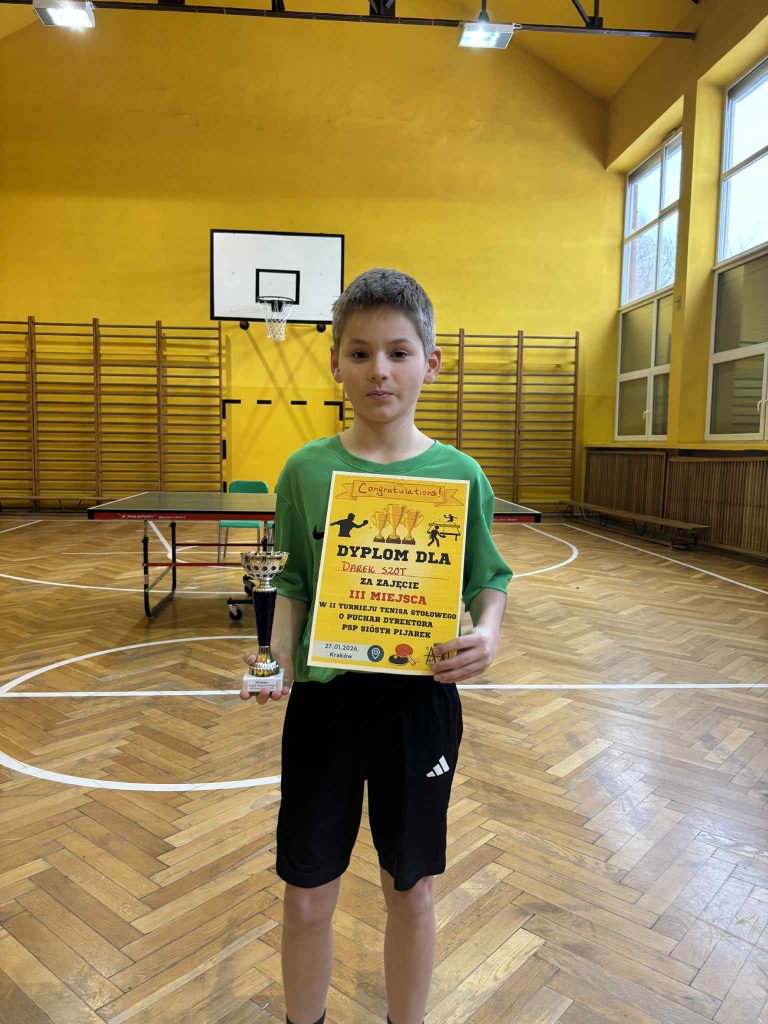 Kolejny sukces naszego ucznia w tenisie stołowym. Darek Szot kontynuując swoją dobrą passę zdobył 3 miejsce podczas II Turnieju o Puchar Dyrektora PSP Sióstr Pijarek, który odbył się 27 stycznia. W turnieju wzięło udział 16 zawodników z 4 krakowskich szkół.