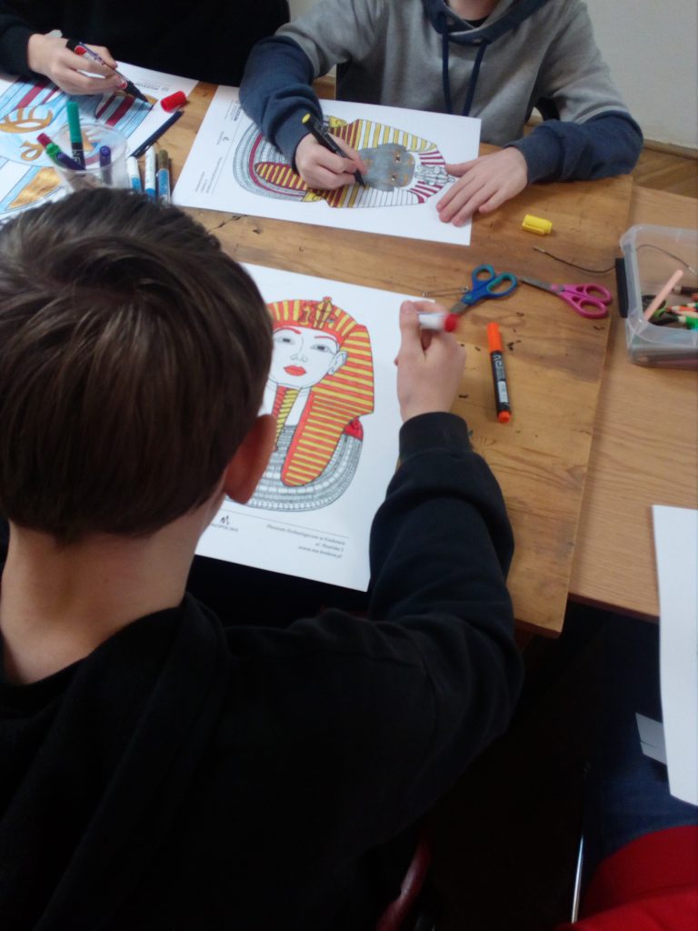 Klasa 6b udała się 05.04 na wycieczkę do Muzeum Archeologicznego w Krakowie. Uczestniczyliśmy w warsztatach pt. Jak się połapać w świecie antycznych bogów. Naszą wiedzę utrwaliliśmy wykonując maski nawiązujące do bogów dawnego Egiptu. Następnie zwiedziliśmy wystawę stałą muzeum. W planie dnia nie zabrakło posiłku oraz rekreacji w archeologicznym ogrodzie zabaw.