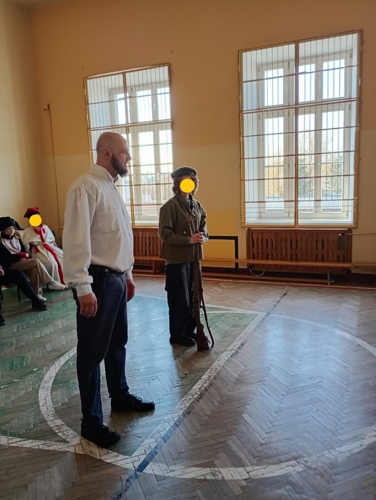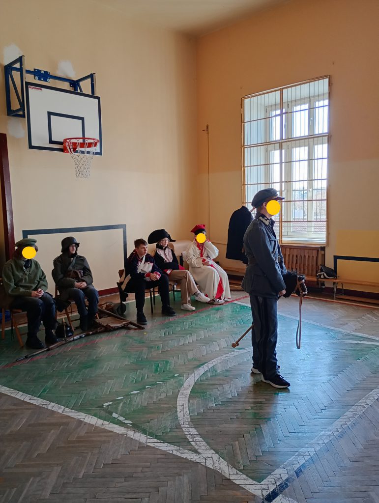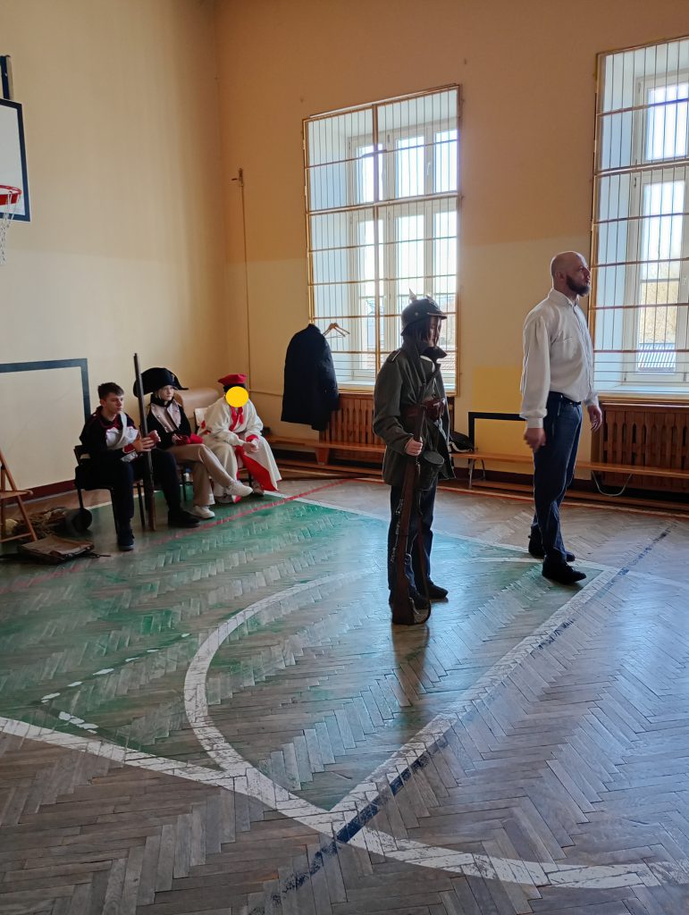 21 marca klasy 6a, 6b, 7a, 7b oraz 8b miała przyjemność uczestniczenia w warsztatach z rekonstruktorem historycznym Panem Damianem Klinkoschem. Zajęcia nosiły tytuł Żywa lekcja historii: Droga do niepodległości. Uczniowie poznali bliżej uzbrojenie z czasów od powstania kościuszkowskiego do powstań śląskich. Dzieci miały możliwość przymierzania mundurów wzorowanych na tych z epoki oraz odegrania krótkich inscenizacji z wykorzystaniem rekwizytów-replik m.in. kosa, karabin z bagnetem. Wszystko było okraszone przez prowadzącego dużą dawką humoru. Dzieci były zachwycone zajęciami.