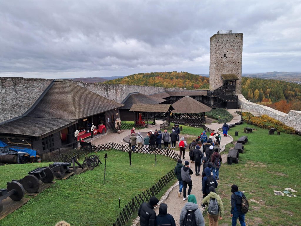 Pod koniec października klasy 7a, 7b i 8b wzięły udział w wycieczce do Ziemi Świętokrzyskiej. Na początku odwiedziliśmy malowniczo górujący nad okolicą Zamek w Chęcinach, przewodnik przybliżył nam jego historię. Kolejnym punktem wycieczki było pobliskie Centrum Nauki Leonardo Da Vinci gdzie uczniowie mogli korzystać z wielu urządzeń i modeli przybliżających tajemnice ludzkiego ciała, przyrody, techniki i nie tylko. Po tym interaktywnym doświadczeniu pojechaliśmy zagłębić się w piękną Jaskinię Raj i obejrzeć robiące wrażenie różnorodne formy naciekowe o niespotykanym zagęszczeniu. Następnie wróciliśmy pod wieczór do Krakowa. Poniżej kilka zdjęć z wycieczki.